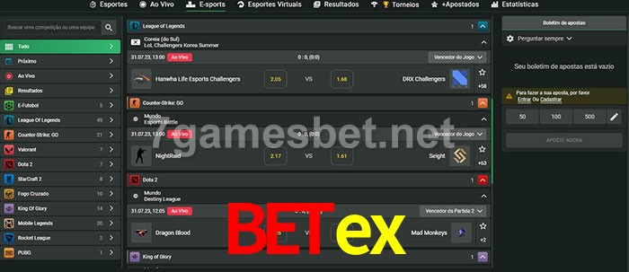O Betex oferece uma grande seleção de opções de apostas em e-sports com probabilidades competitivas